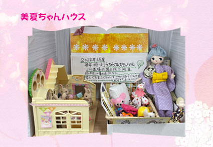 美夏ちゃんハウスもお引越しでいつも見えないので寂しいです。夏らしく浴衣と帯とうちわでチョット大人っぽい美夏ちゃんに変身です。 |