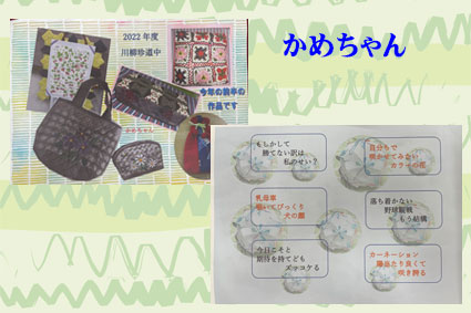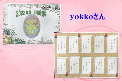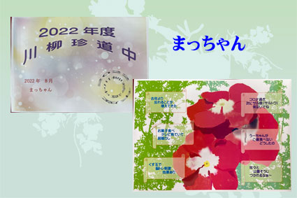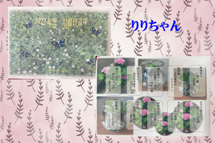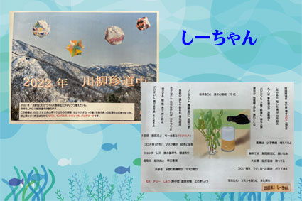 | 今年もコロナの影響でメンバーさんそろっての発表にはなりませんでした。川柳の10句のしばりが解けて気楽に作れました。川柳面は体験談が多くてなるほどなぁとか 身近に感じたことなど いっぱい教えていただきました。題字の面はそれぞれのお気に入りの絵などで表現されています。 |