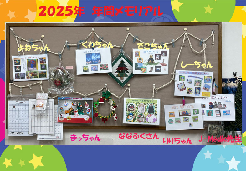 | 2025.12.01 12月もゆっくり進んでくれません。世界中で色々な出来事が起こっているのにいい話が少ないのが寂しいです。メモリアルも嬉しいことをたくさん書き込める年になって欲しいですね。皆さんの一年の成果が表紙に残っていくことはうれしいですね。 |