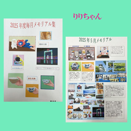 | 2026.01.01 2025年度の毎月メモリアル集です。メンバーさんの1年の出来事や教室の課題など楽しく拝見しました。旅行のメモリアルは私の行った事のないところが多くて写真をを拝見しながら説明をして頂くのを楽しみにしています。何年かして見返したときに教室のことも思い出すでしょうね。 |
