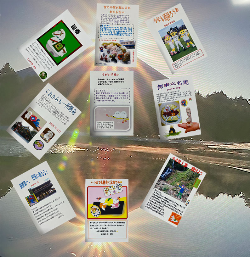 | 2026.01.01 明けましておめでとうございます。冬はがきが新年早々困った事になりましたが 今は解決しているようです。背景は初日の出ダイヤモンド富士(羽鳥慎一モーニングショー)から頂きました。皆様の心温まるコメントに今年もがんばる力をいただきました。本年もよろしくお願いいたします。 |